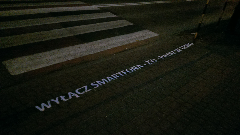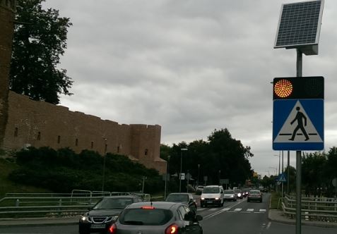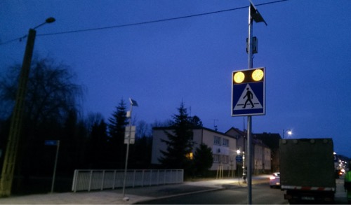 Znaki drogowe aktywne „kroczący ludzik”