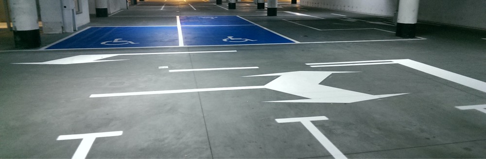 Oznakowanie poziome hal garażowych, magazynowych i parkingów wewnętrznych