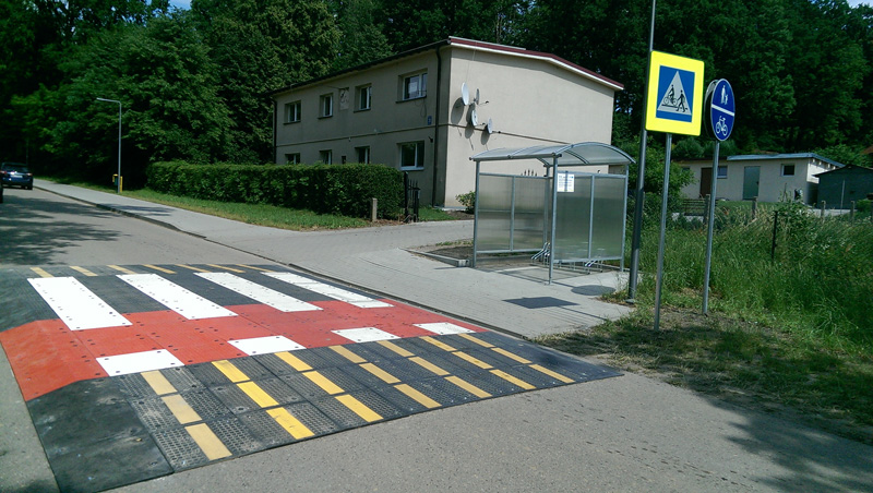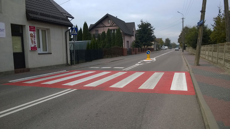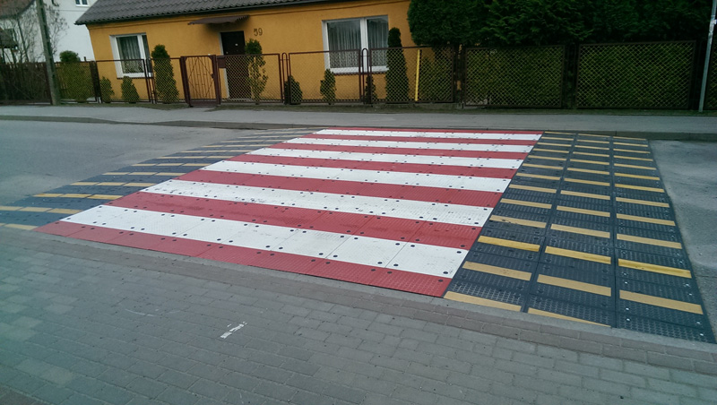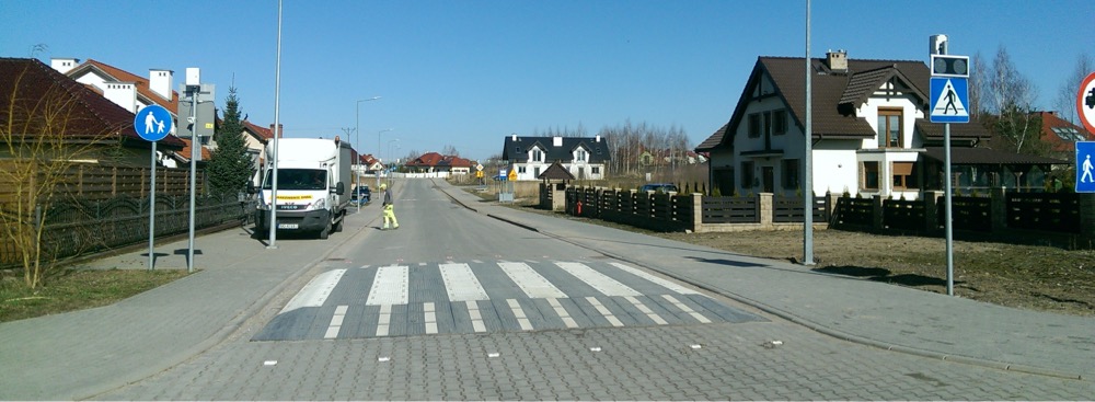 Wyniesione przejścia dla pieszych, lub z ostrzegawczymi lampami LED i oświetleniem